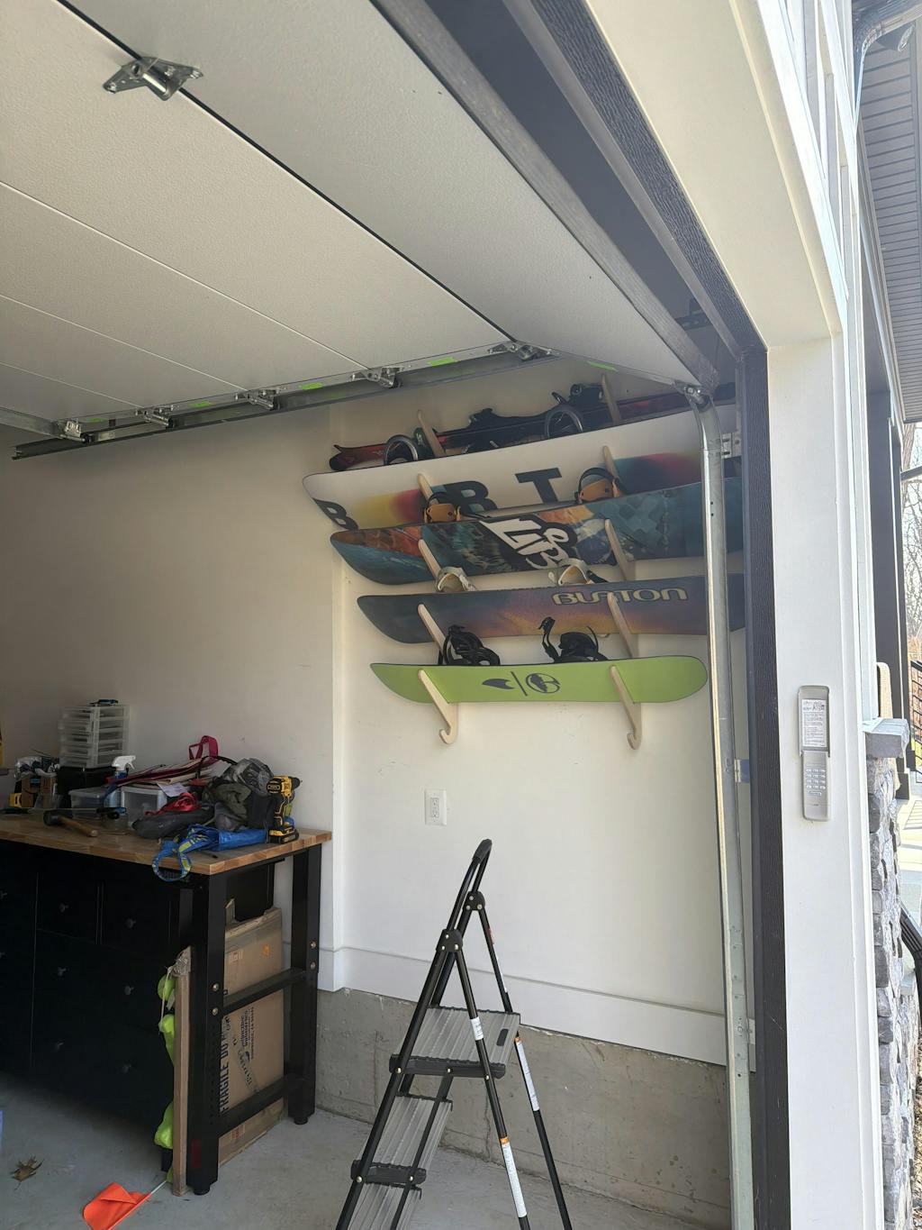 Unlike other snowboard wall mount systems, THE LIFTY features an innovative, user-friendly mounting design. Each arm is "hooked" into a cross-support bar, allowing easy adjustments along the support. This adjustable system means you can slide the arms apart to find the right distance for your boards, saving time and avoiding wall damage from permanent fixes. This feature also makes it simple to add or remove boards as needed, making it a valuable addition for dynamic storage needs.