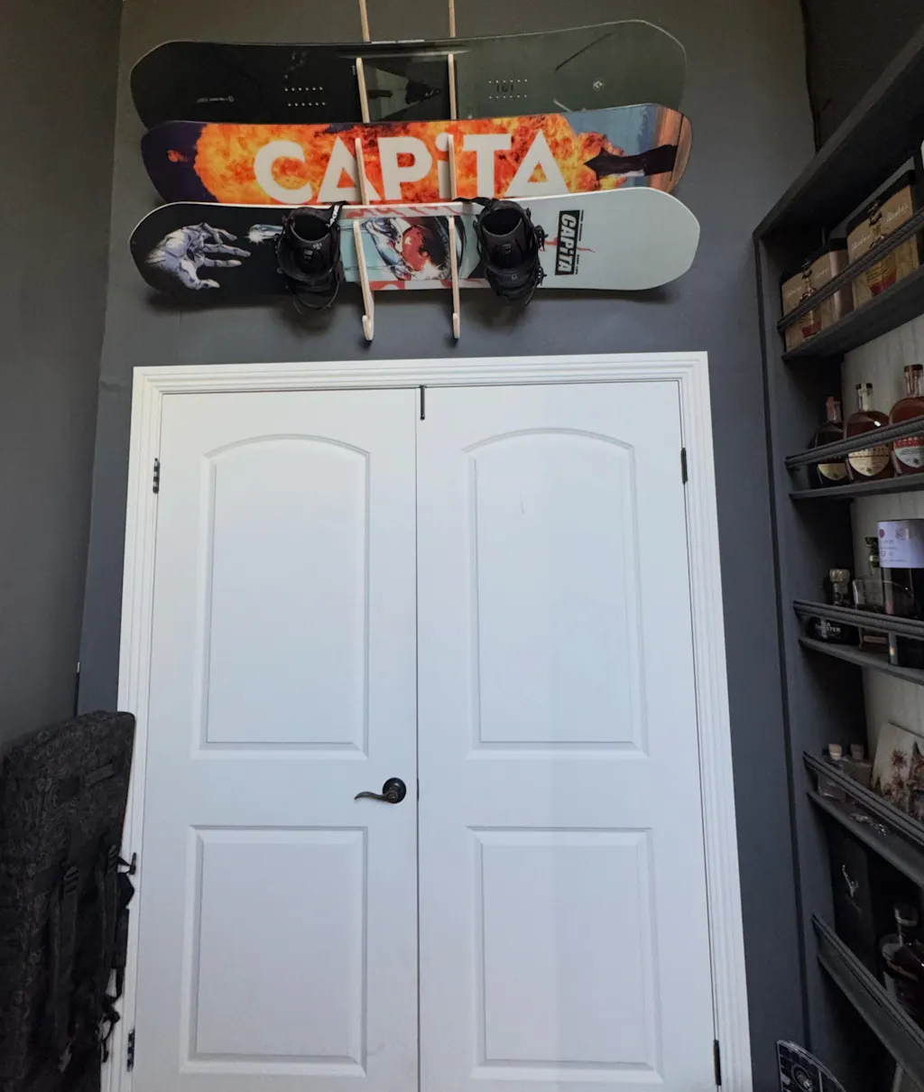 Elevate your board storage with THE LIFTY Snowboard Wall Rack. Order now right here online, or reach us at 720.316.5579 or through our contact form if you have any questions about our premium snowboard wall mount.